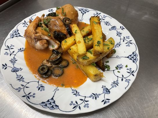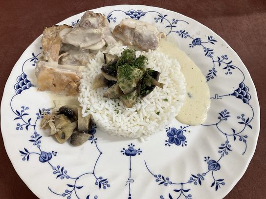 Pour votre plat, Christophe vous a préparé de la blanquette de poulet désossé agrémenté de champignons et d’une sauce à la crème et au sancerre