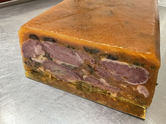 Pour vos entrées, Christophe vous a préparé de la langue de porc en gelée