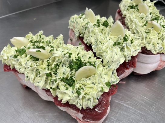 Pour ce week-end Christophe vous propose un savoureux rosbif agrémenté d’un beurre d’ail fait maison